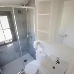 Koupelna zahrnuje samostatnou toaletu a sprchu.